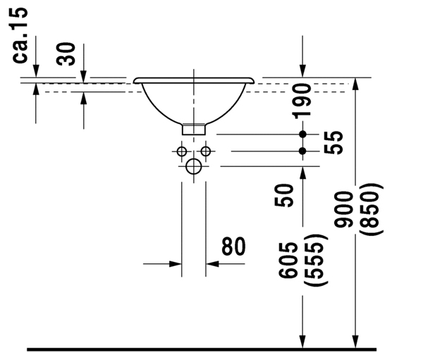 D-Code 半嵌式脸盆 0339550000/0339550030有溢水口, 有安装龙头台, 包含安...